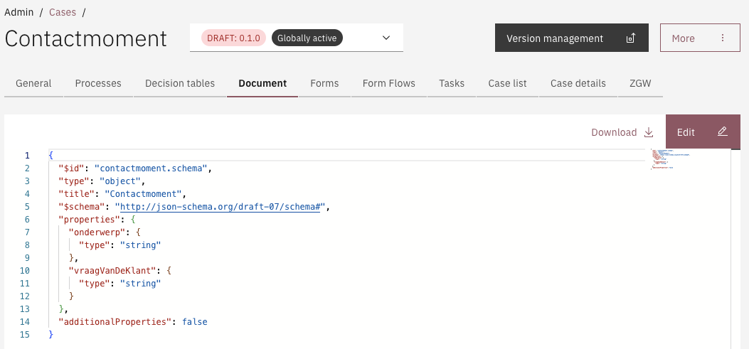 Changes to document definitions **have immediate effect on newly created cases** based on this document definition. Changing this file means changing the blueprint that is used to validate each case that is created in Valtimo based on this blueprint. Changes will have impact, so create backups when unsure of the result.