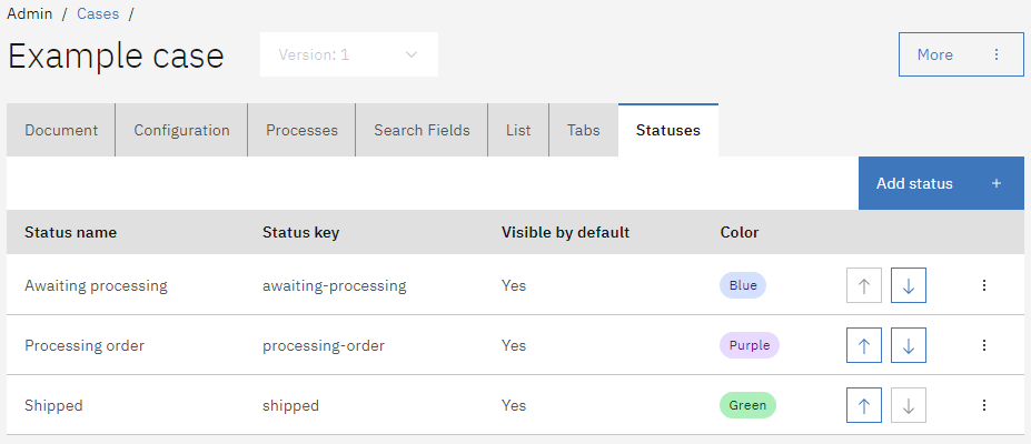* Go to the `Cases` menu and select the case to configure statuses for