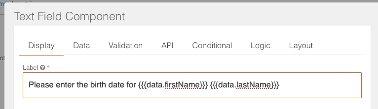 Data can be included in Form.io forms in multiple ways. One of the more common ways is to interpolate variables in field descriptions and HTML type fields.