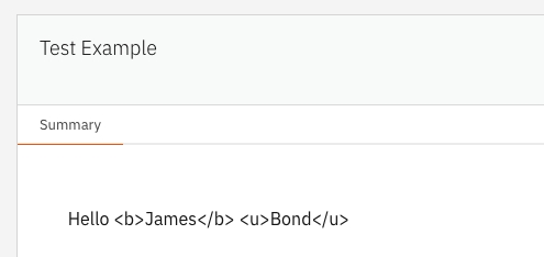 Sometimes it is useful to use html as part of the expression itself. The example below can be used to display a list of names in a form. It uses an unordered list for clarity. The actual value is escaped using the _.escape