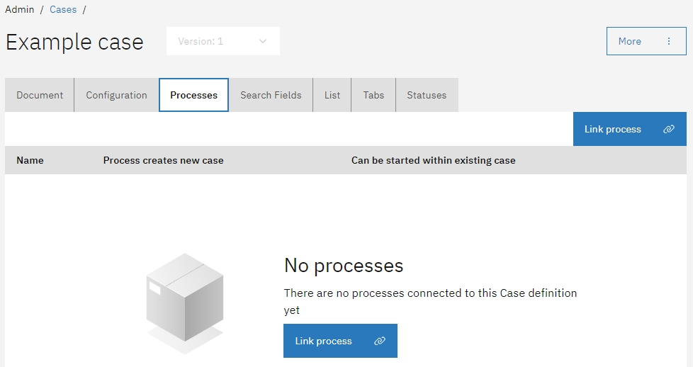 This case tab makes it possible to connect any process in that implementation to the case definition.