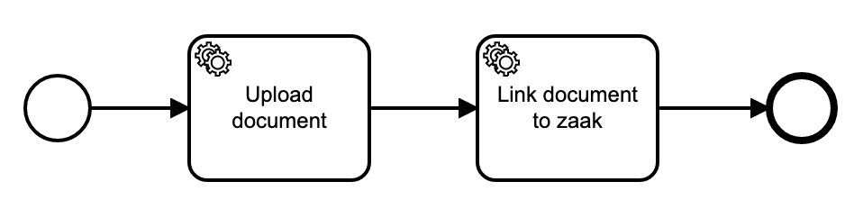 Process links can be used to configure the Upload Document process. The first service task called 'Upload document' can be linked to a Documenten API plugin action called 'Save uploaded document'. Look here for more information.