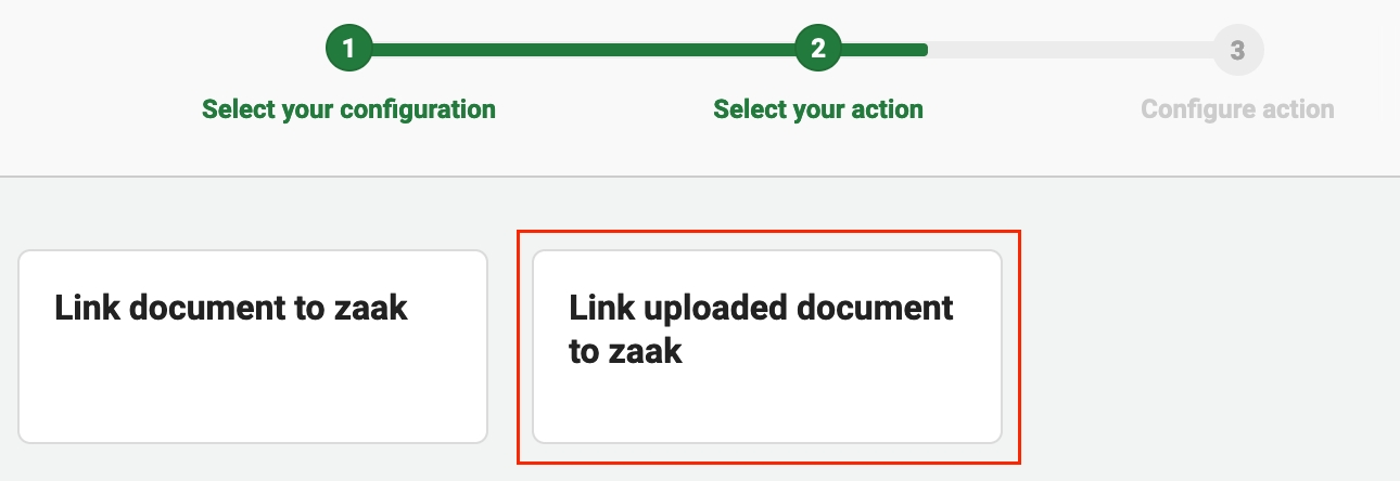 Configuring the first service task of the Upload Document process is enough to let Valtimo users upload their documents to the Documenten API in Valtimo. But the documents will not be visible yet in case information within Valtimo. This is because the document has not been linked to any zaak.