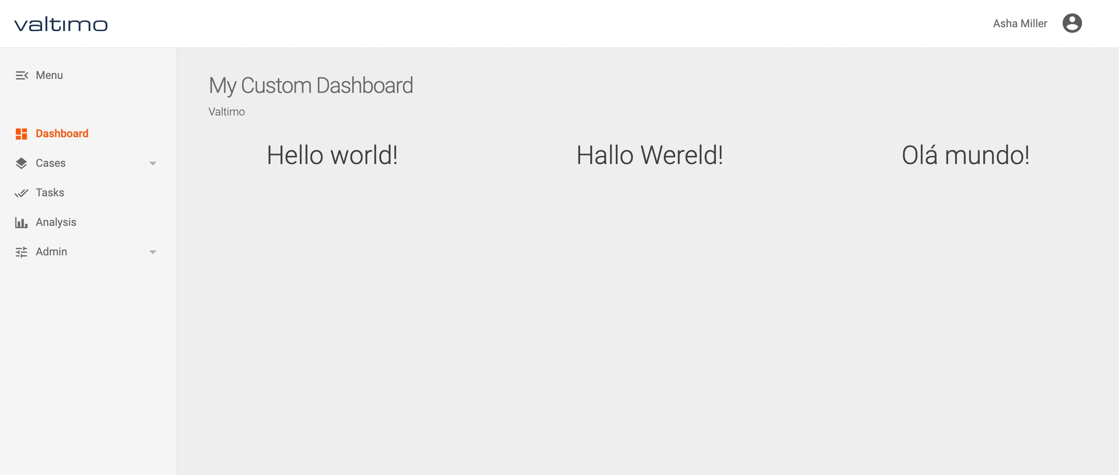 Valtimo provides the possibility to introduce your own dashboard and add functionality to your project. The following example will provide details on how you can introduce your own custom dashboard.