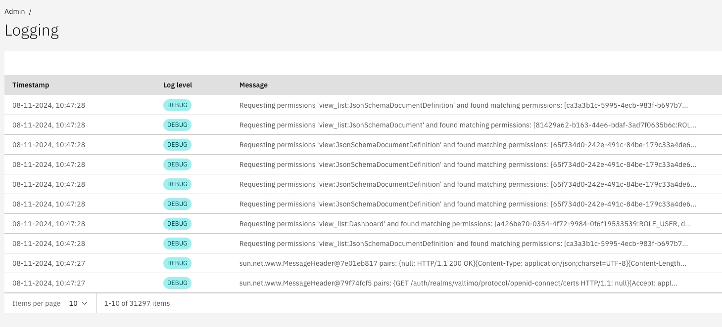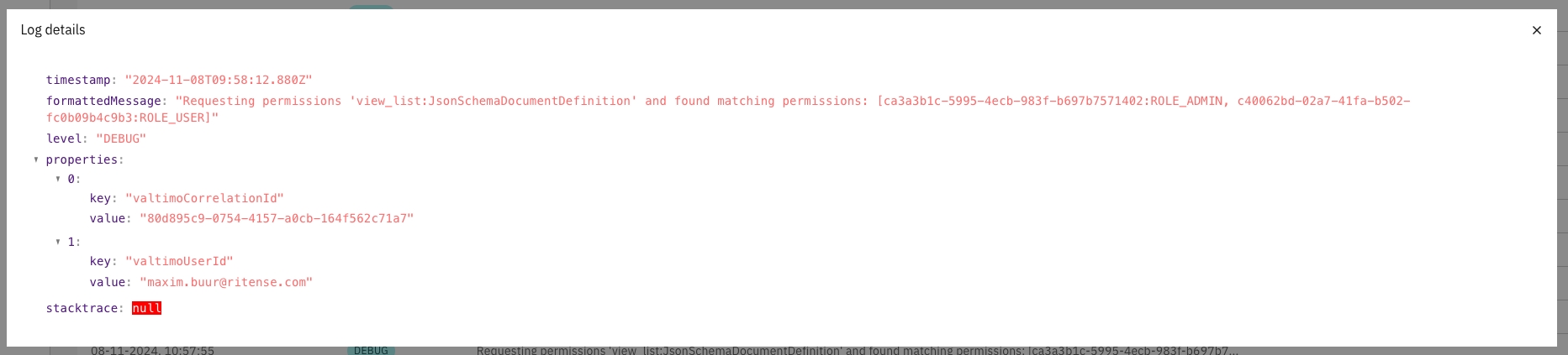 For every action in, or request to the Valtimo backend, a lot of information is logged. This information can be used for debugging or troubleshooting purposes in a production process, or might be relevant for an administrator that is working on a new case configuration.
